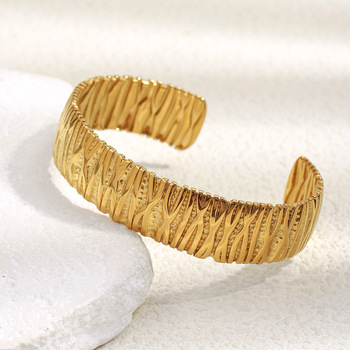 Pulsera de joyería de moda 18K chapado en oro de acero inoxidable Irregular Wave Cuff Bracelets para mujer B148