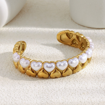 Pulsera de joyería de moda 18K chapado en oro de acero inoxidable corazón geométrico perla brazalete pulseras para mujer B150
